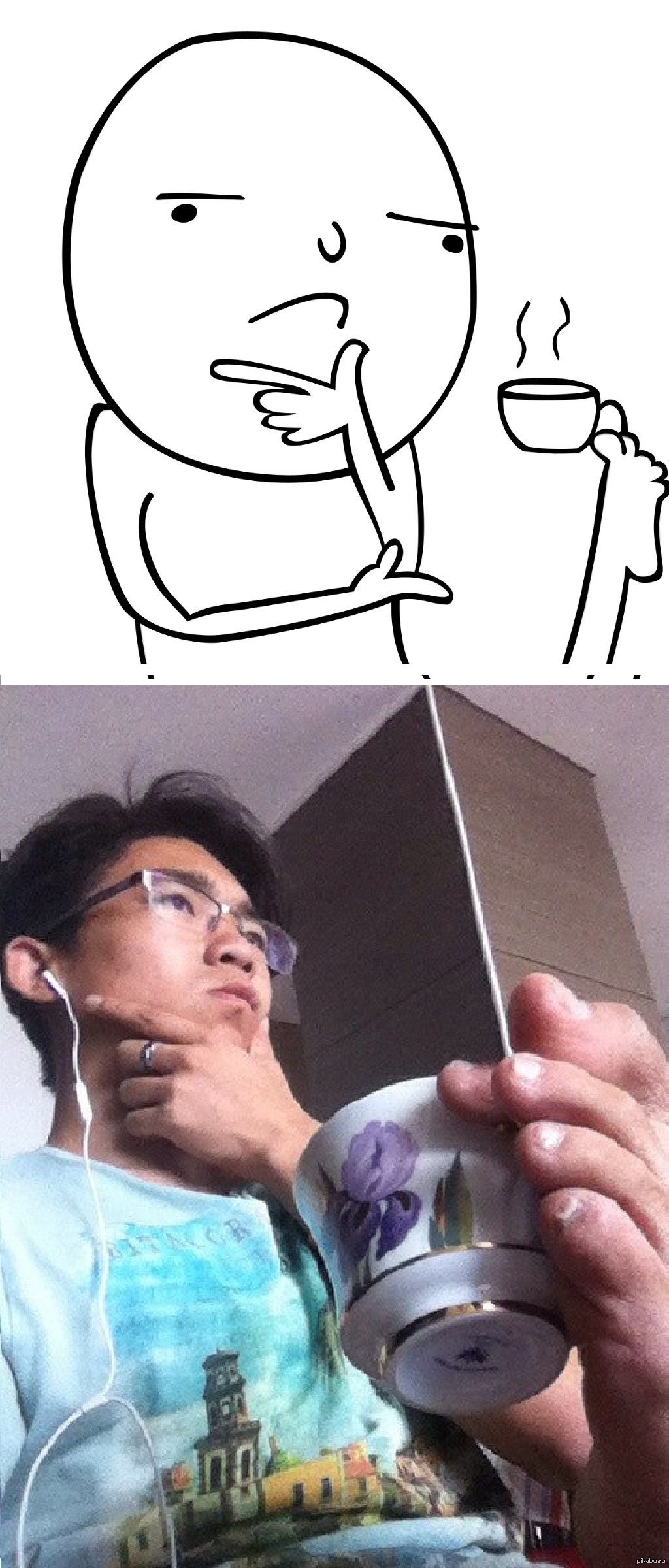 Человек с чашкой Мем