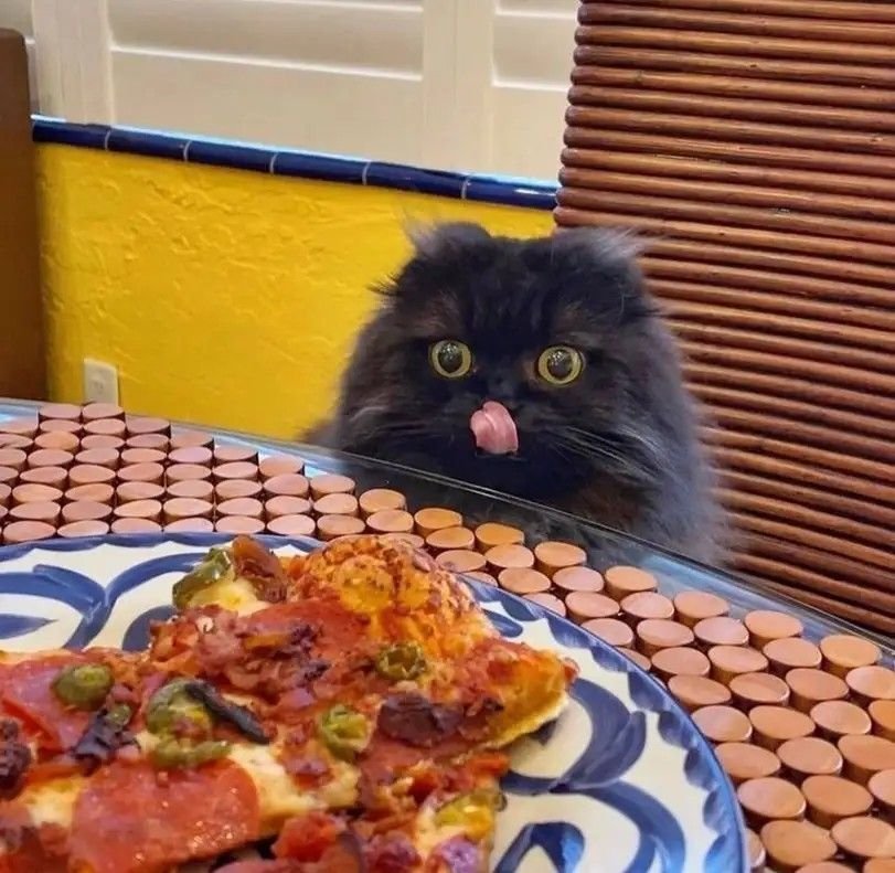 Кот и пицца Мем