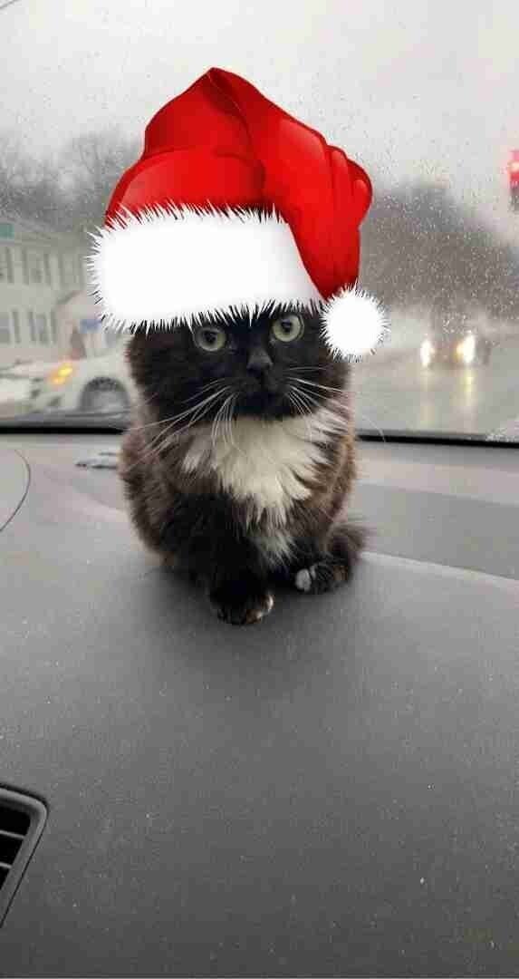 Котик в новогодней шапке