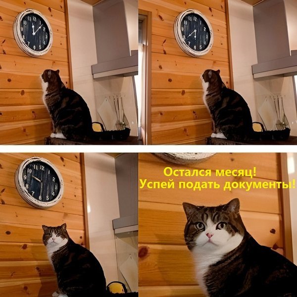Смешные мемы Кот пора с часами