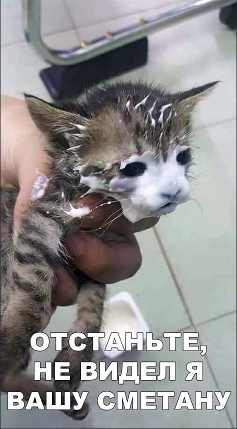 Кот с мордой в сметане