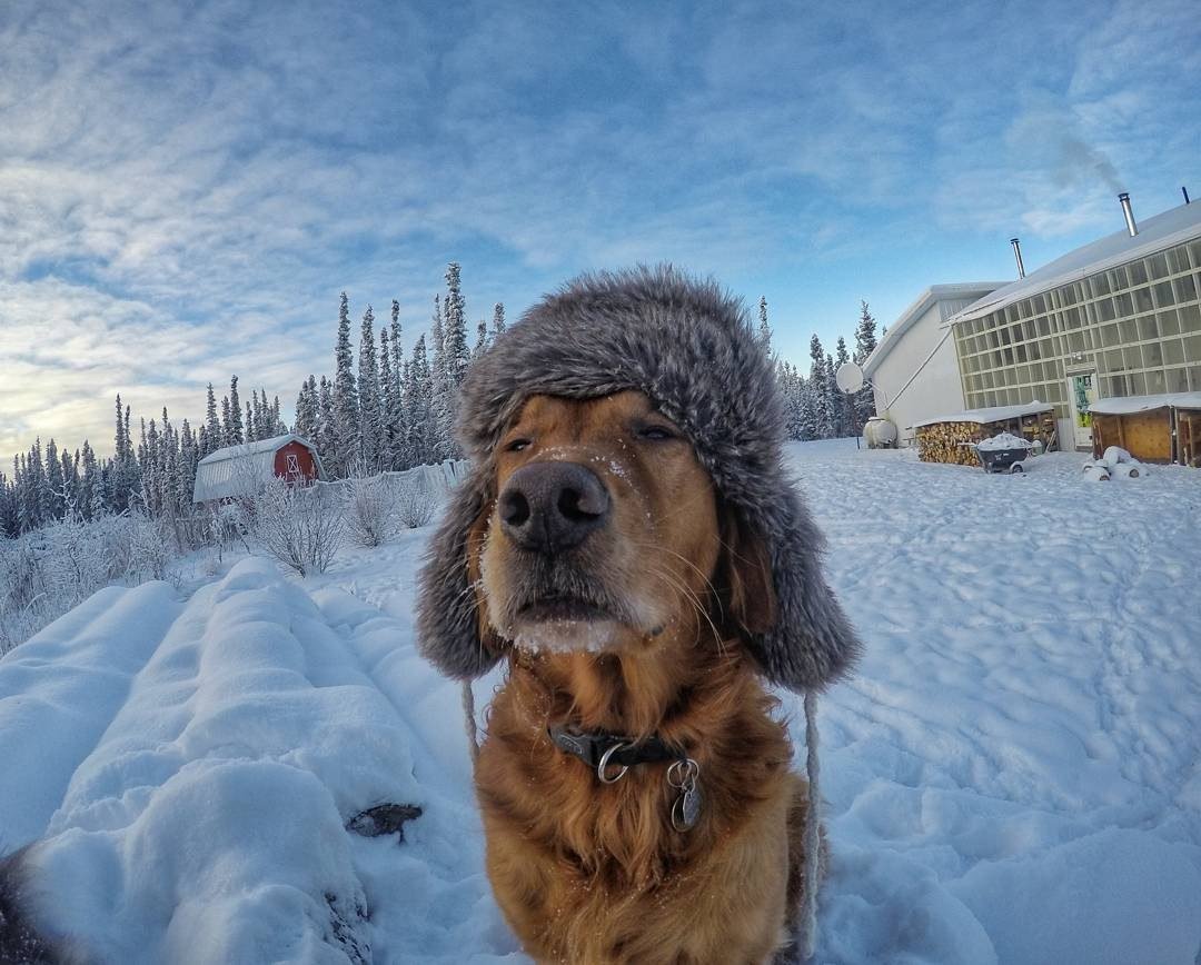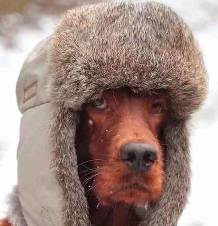Собака в валенках и ушанке