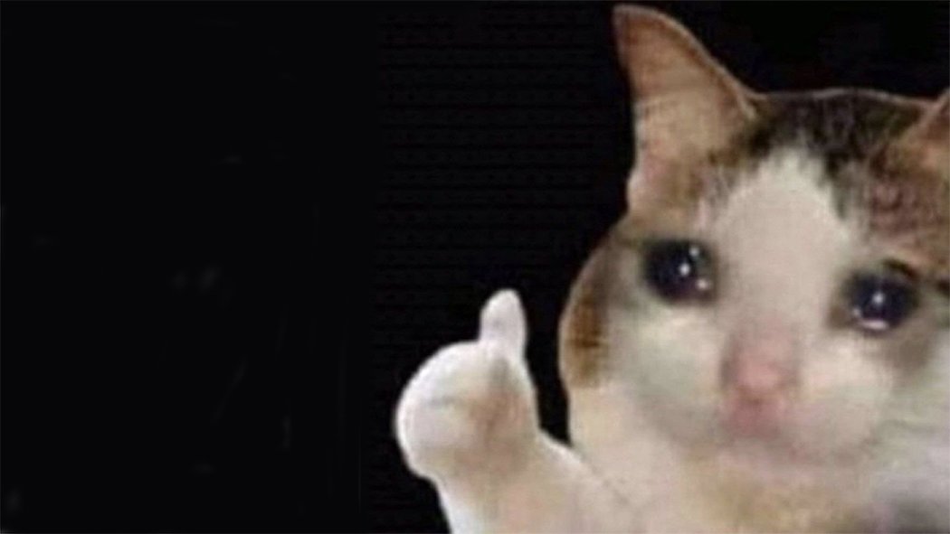Плачущий кот с пальцем вверх