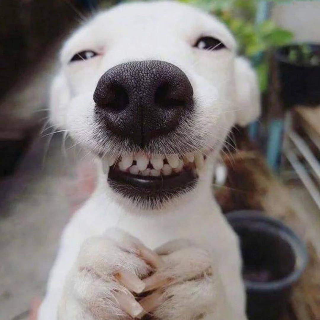 Смешные мемы Собака с зубами улыбается