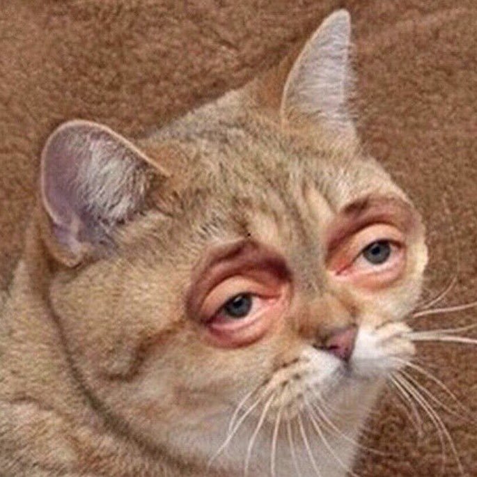 Кот с мешками под глазами Мем