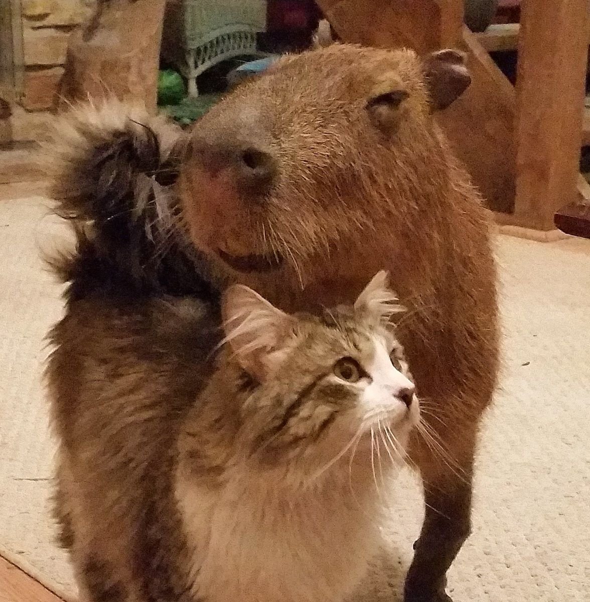 Смешные и умиляющие мемы с изображениями котов и капибар - это популярный источник юмора и позитивных эмоций в сети. Коты, известные своими забавными выражениями лица и нелепыми поступками, сочетаются с капибарами - крупными грызунами, которые обладают дружелюбным и ласковым характером. Этот необычный дуэт создает комические ситуации и заставляет людей улыбаться, становясь объектом тысяч шуток и шуточных комментариев в интернете. Веселые мемы с котами и капибарами распространяют позитивное настроение и поднимают настроение, превращая их в популярный и любимый контент для многих пользователей.