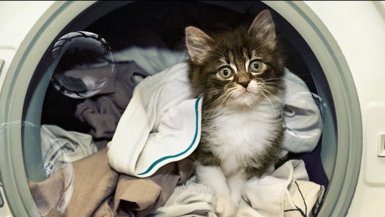 Постирали котенка в стиральной машине