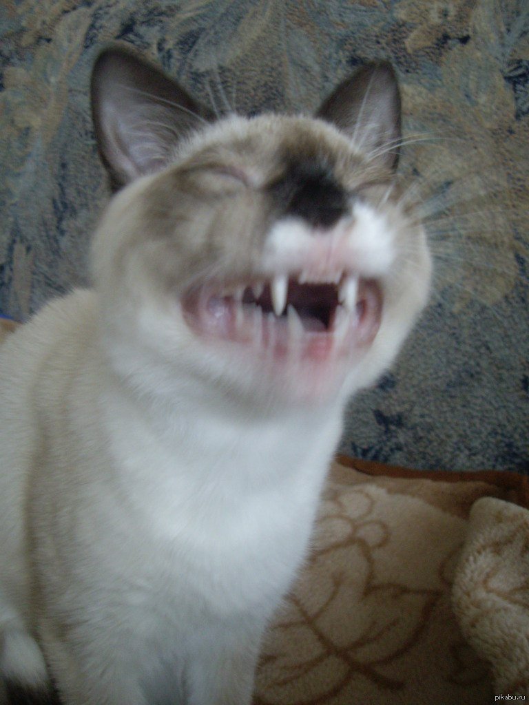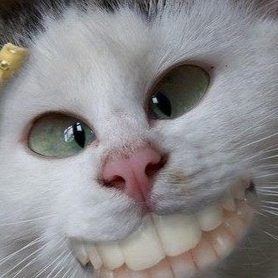 Смешные мемы Белый кот с зубами