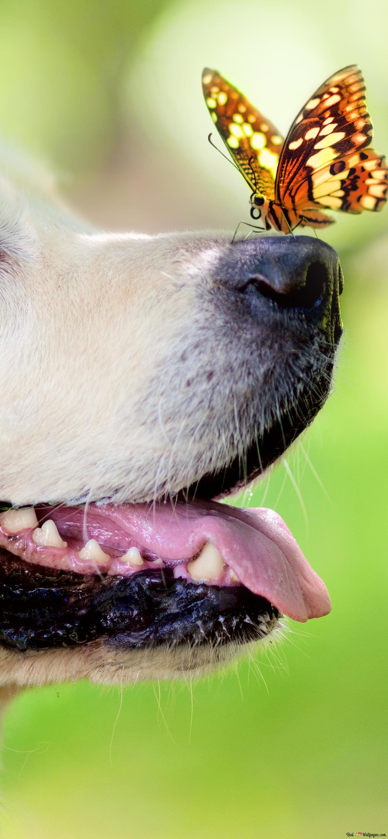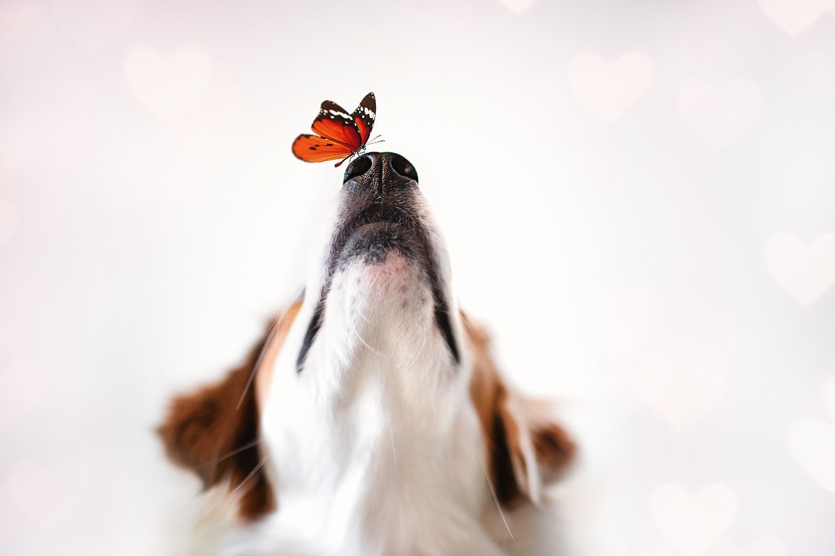 Собака с бабочкой на носу