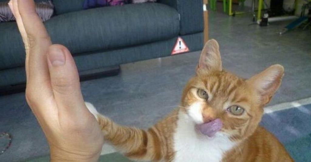 Кот здоровается