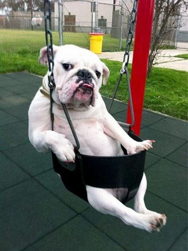Мопсик на качелях