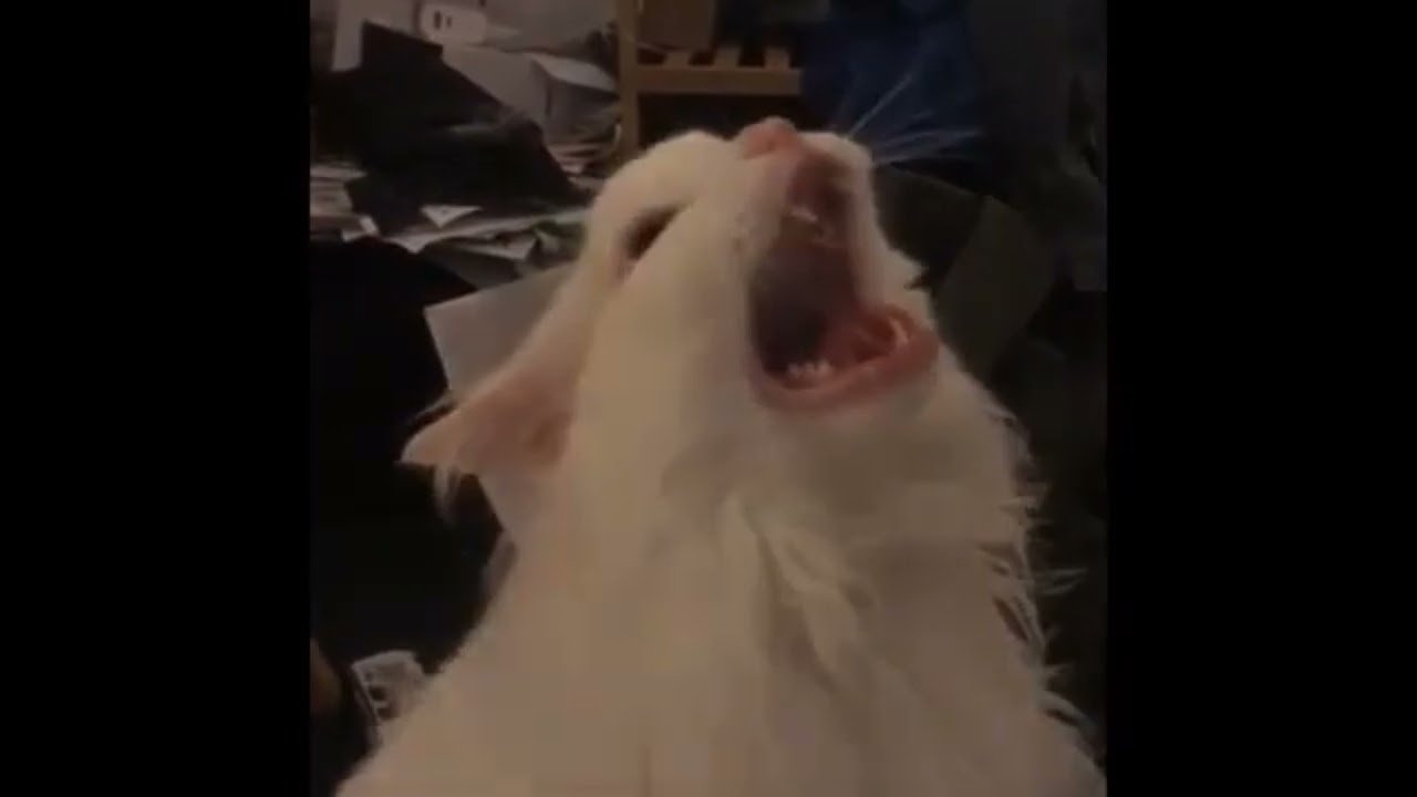 Белый кот Мем мяукает