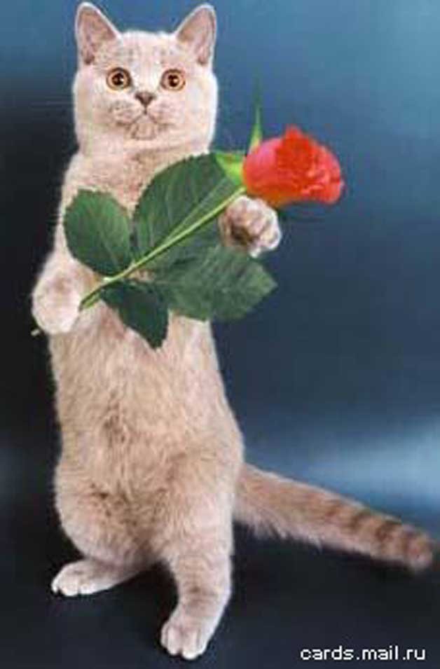 Кот с букетом