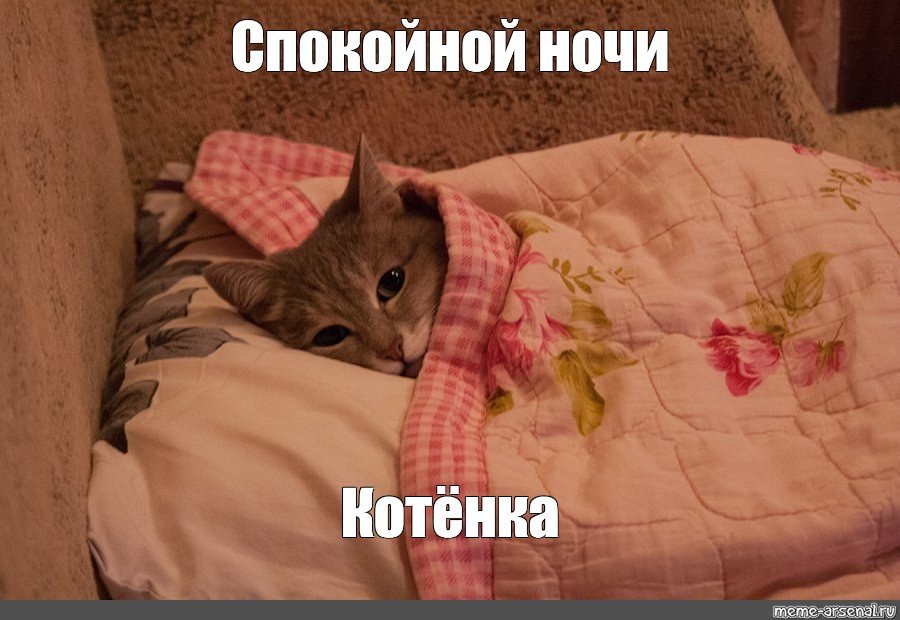 Спокойной ночи котик Мем