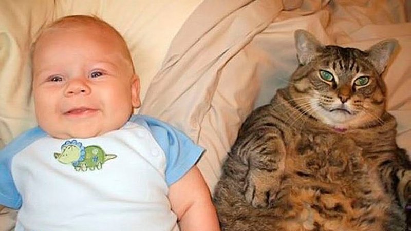 Кот и ребенок Мем