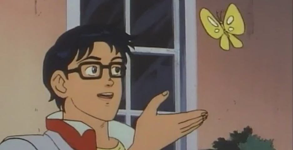 Мем с аниме парнем и бабочкой