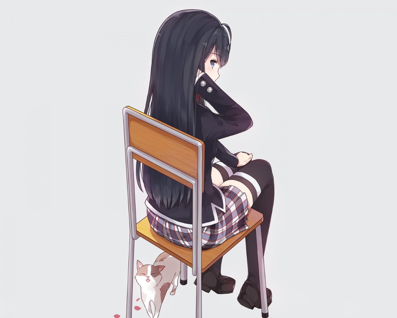 Аниме девушка сидит на стуле