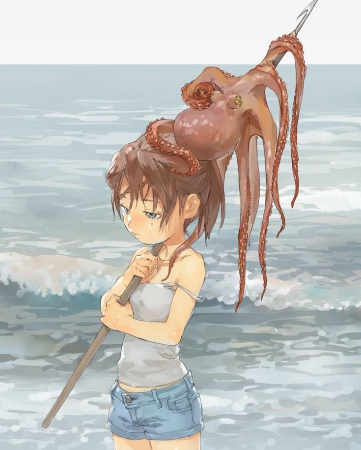 Аниме осьминог и девушка