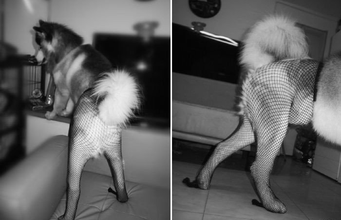 Собака в капроновых колготках
