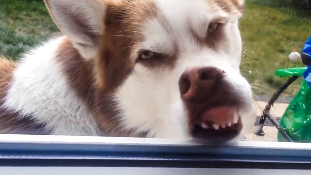 Собака носом в стекло