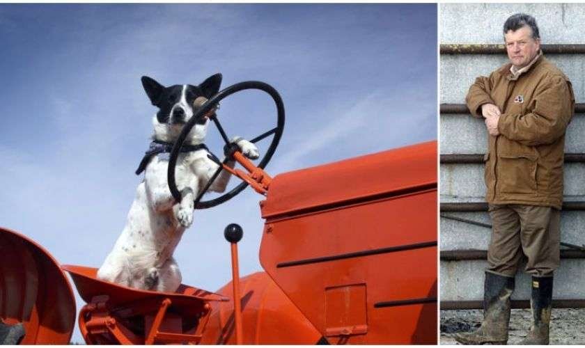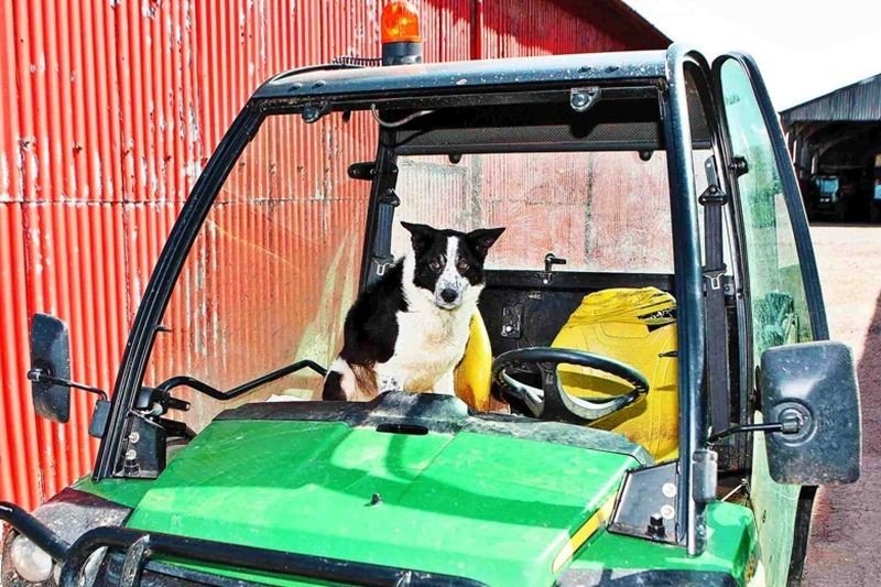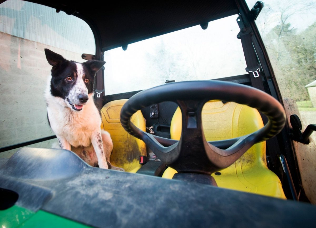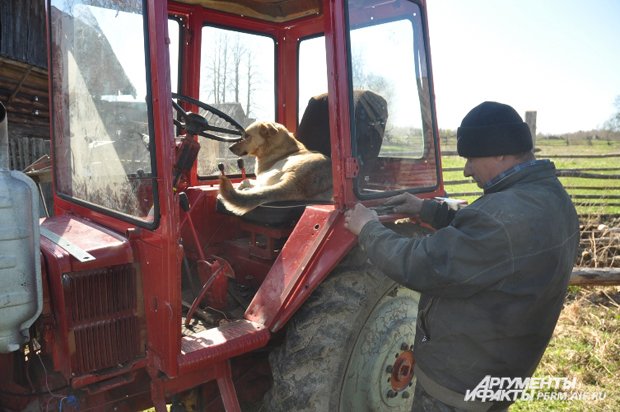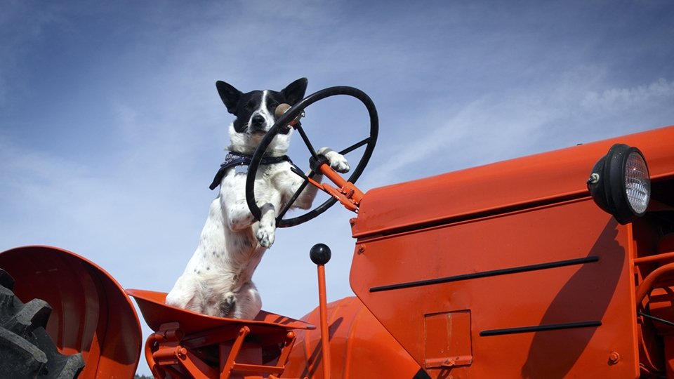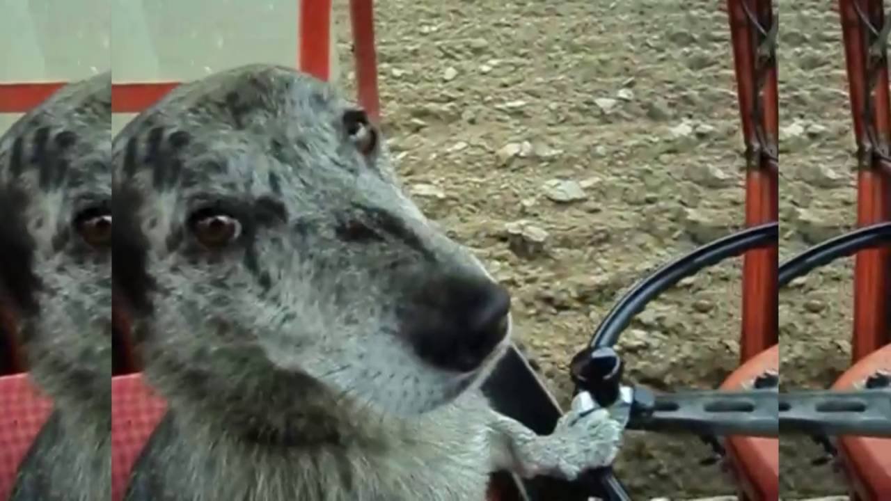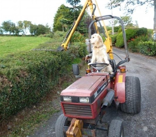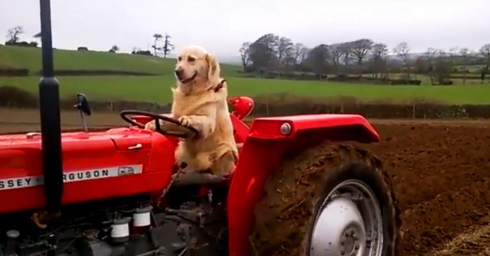 Собака за рулем трактора