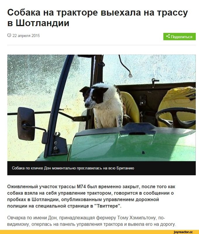 Собака на тракторе улетные животные