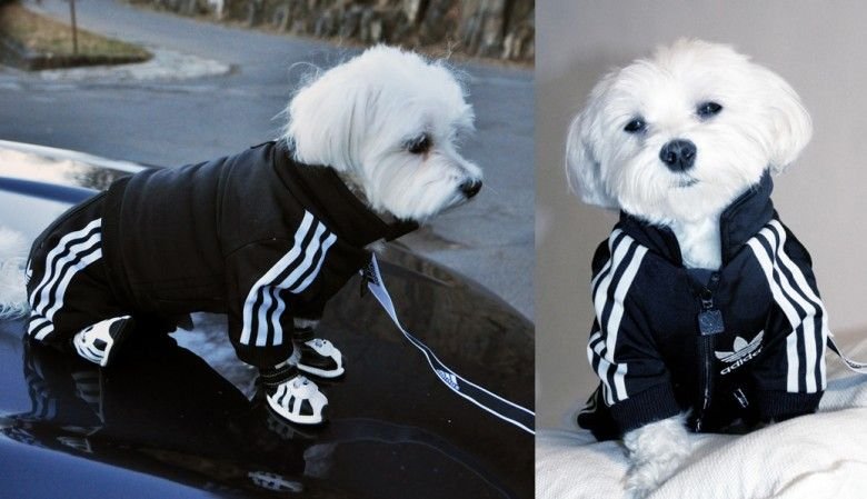 Собака в костюме адидас