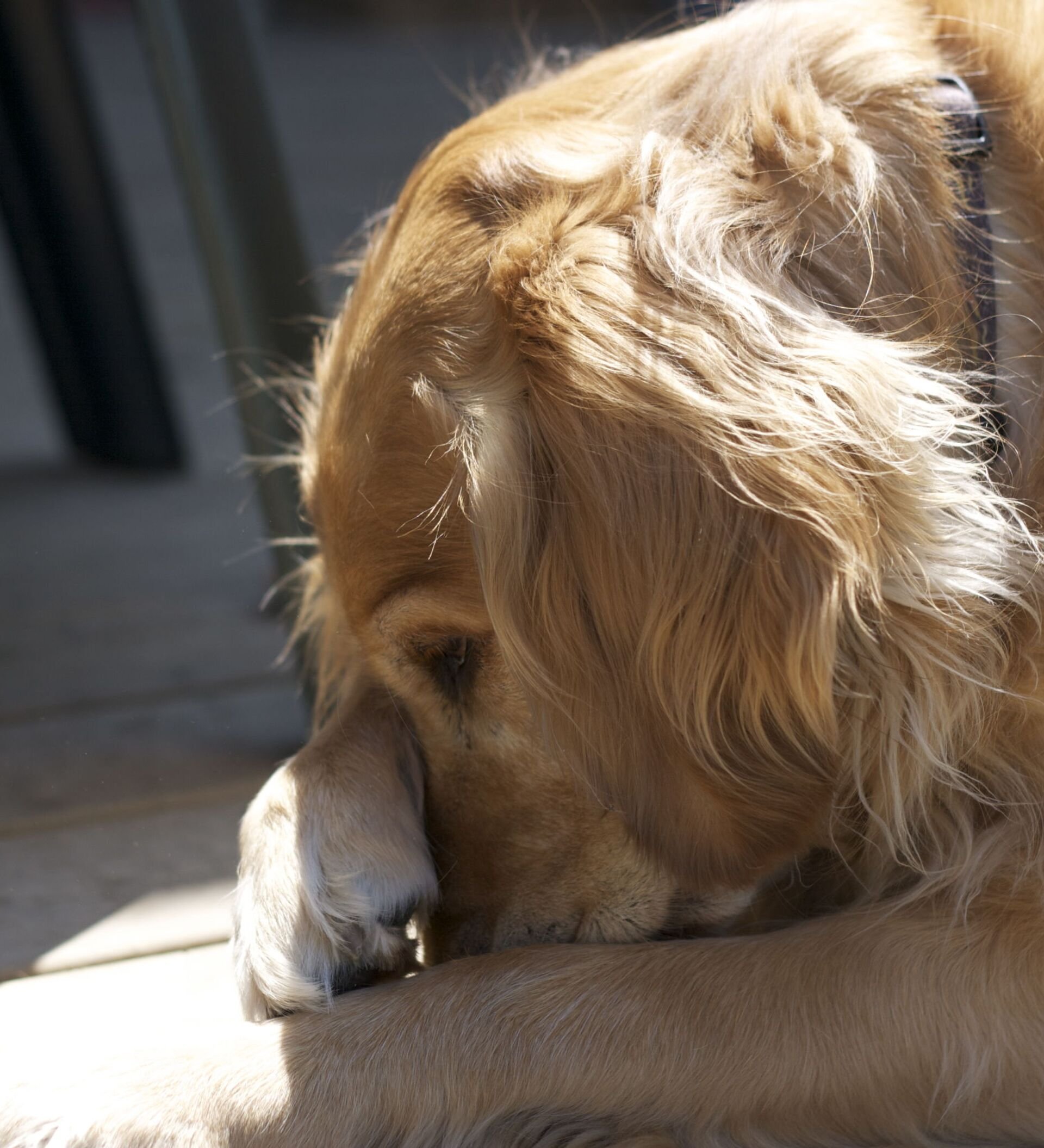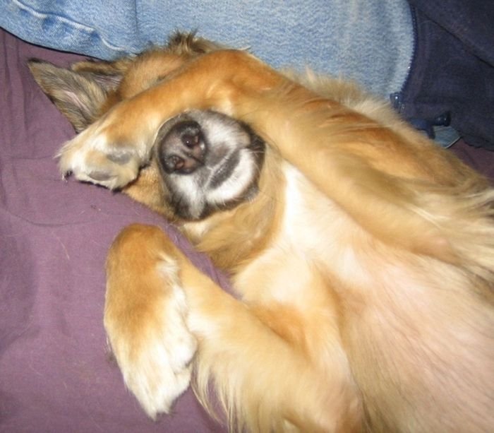 Собака закрыла глаза лапами