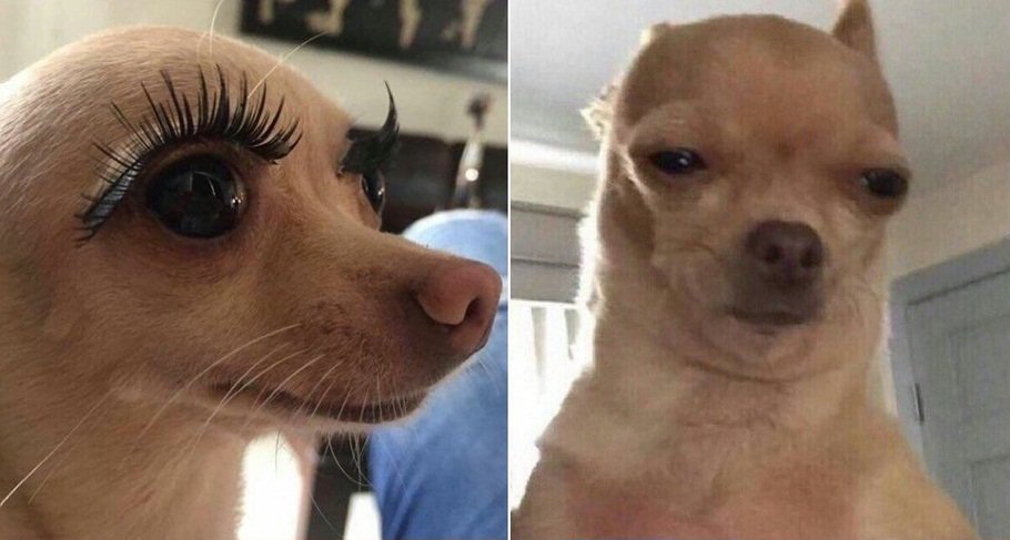 Собака с накрашенными бровями