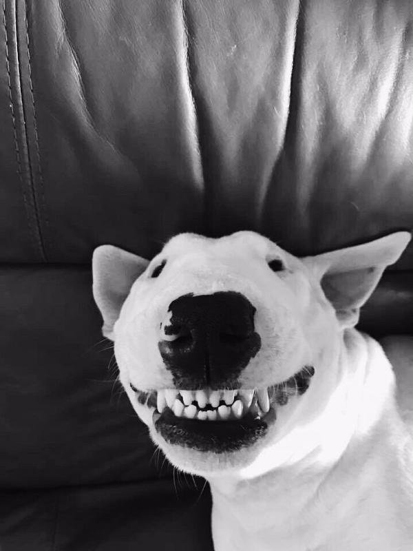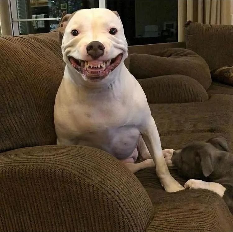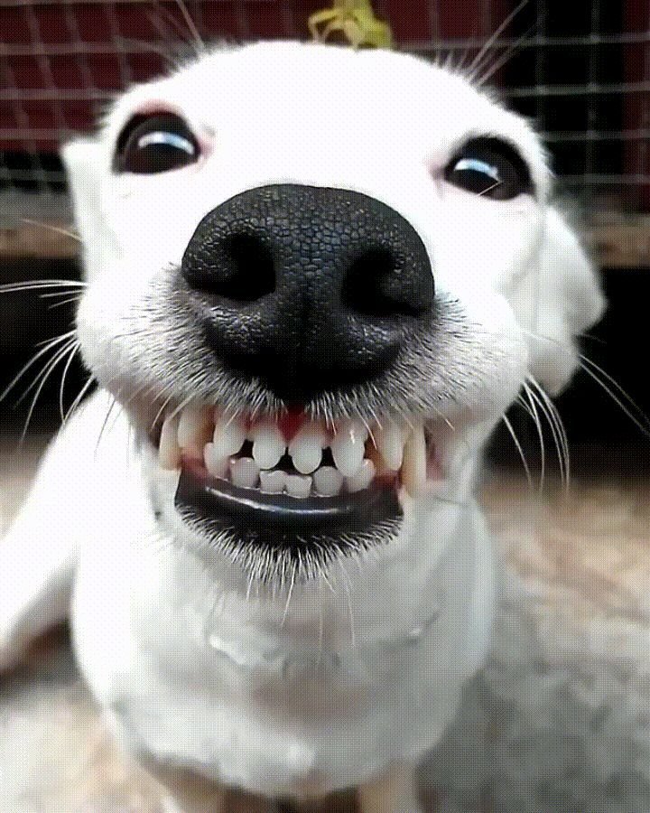 Смешные мемы Белая собака улыбается