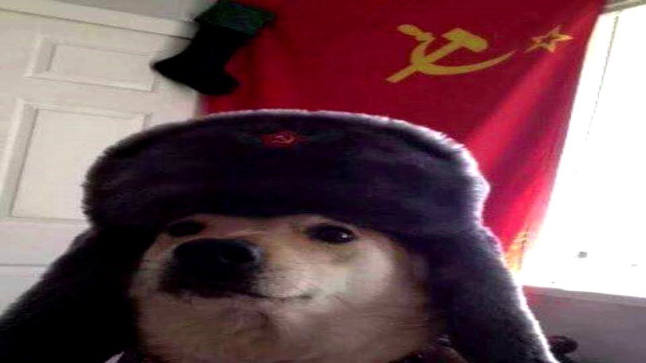 Собака с советским флагом Мем