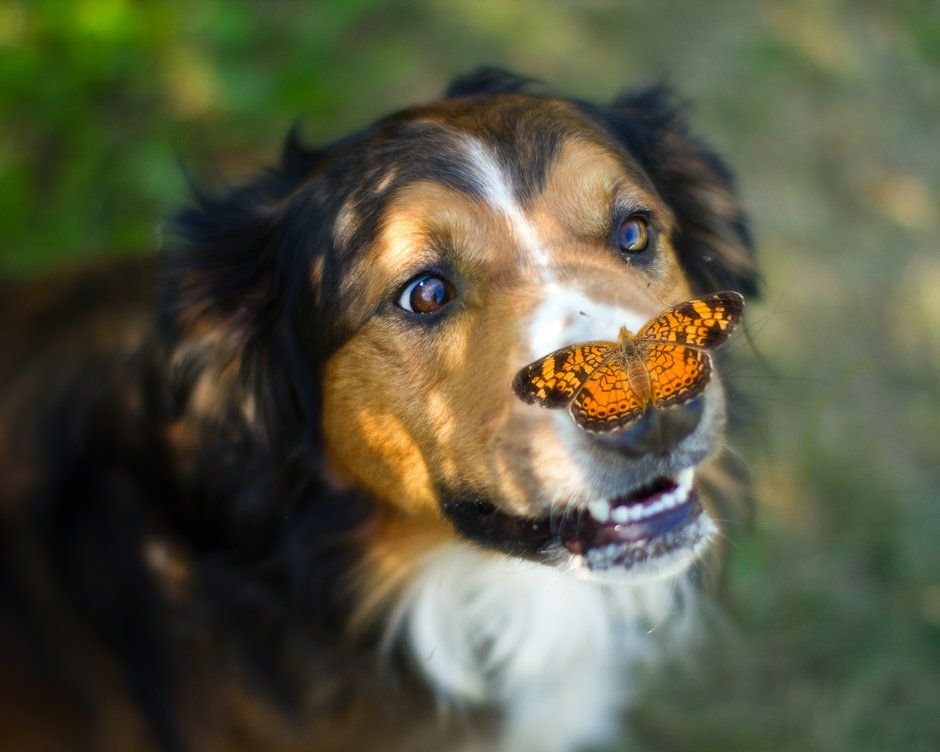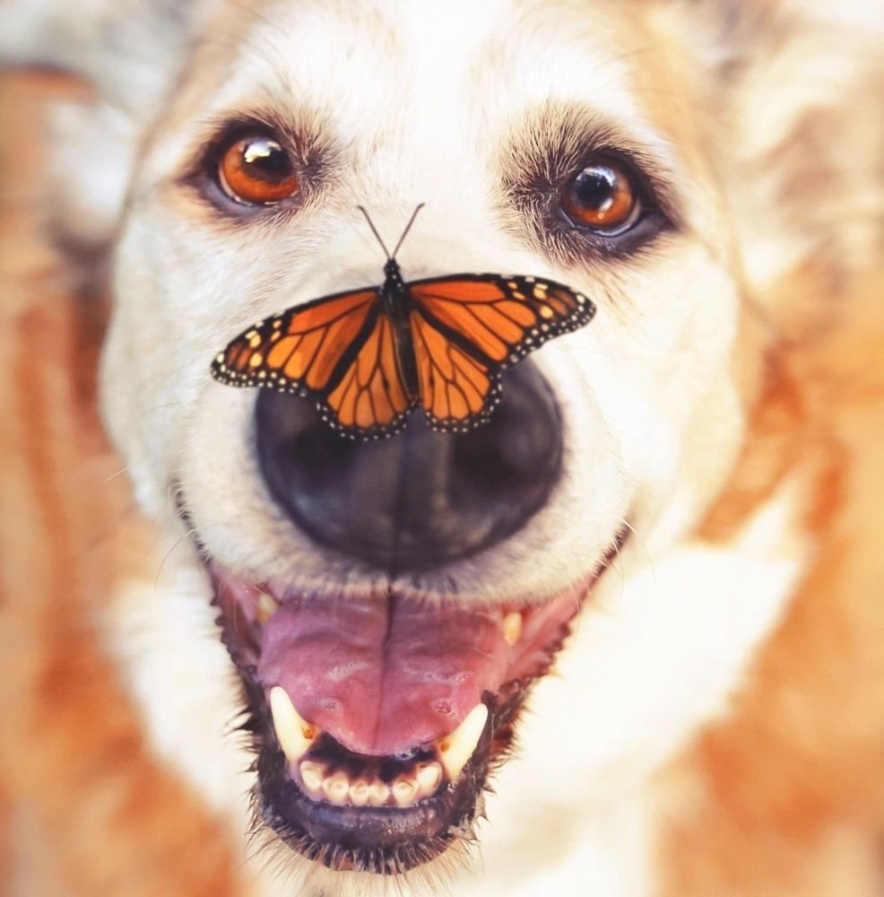 Песик с бабочкой на носу