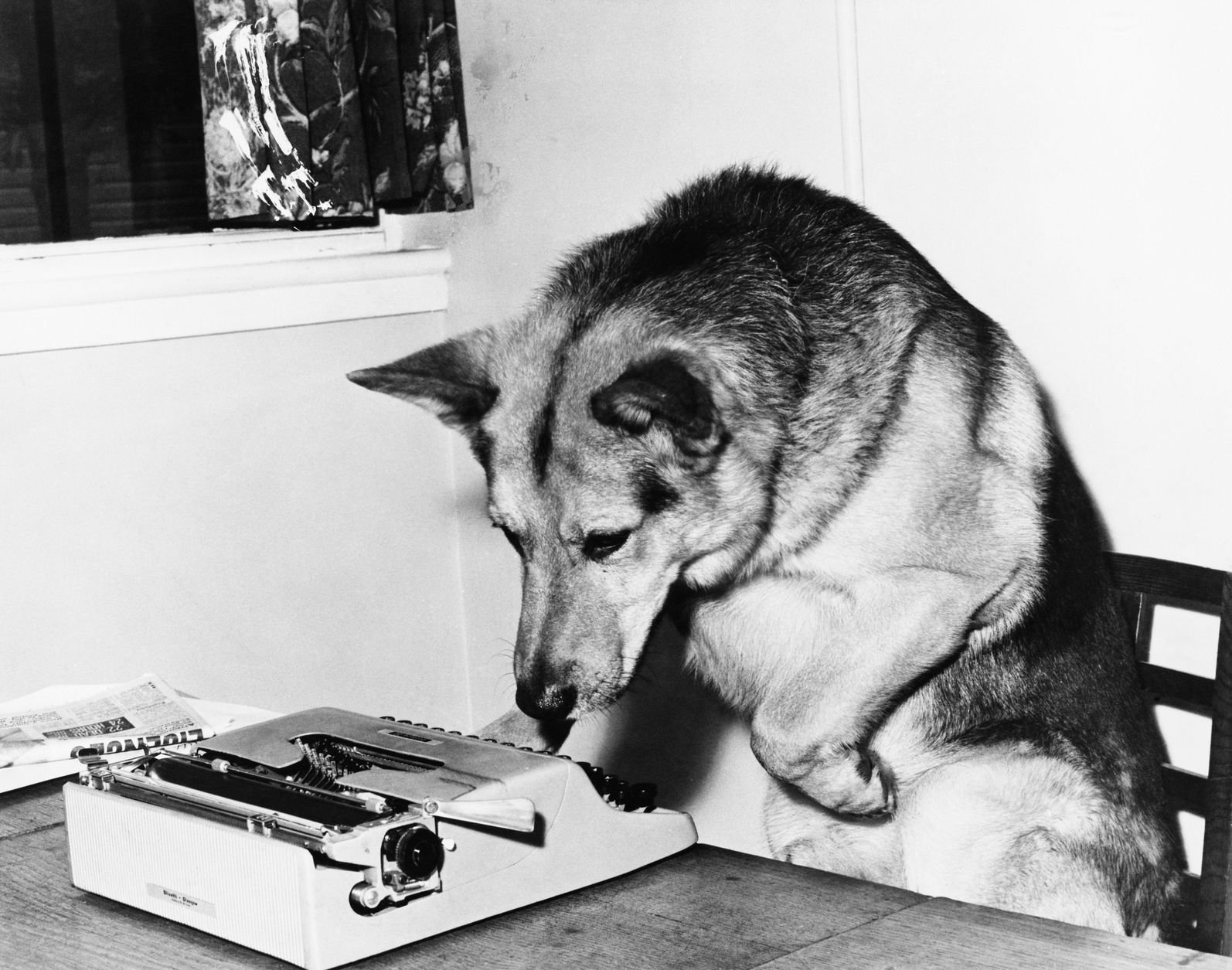 Собака сидит за столом