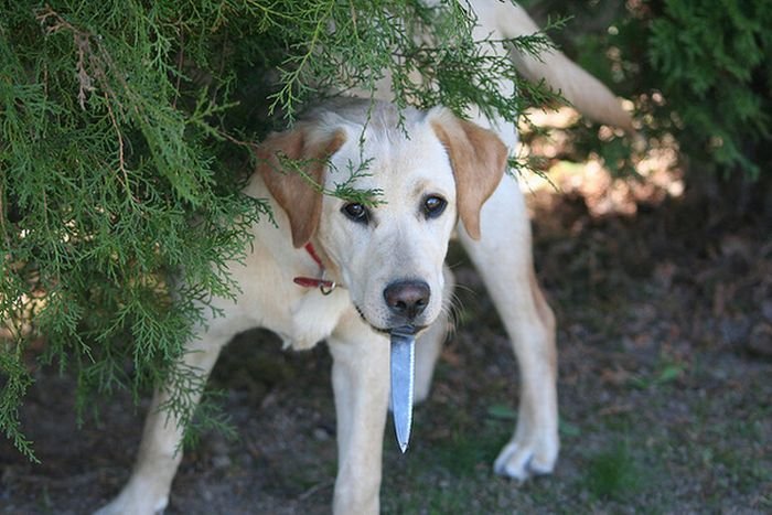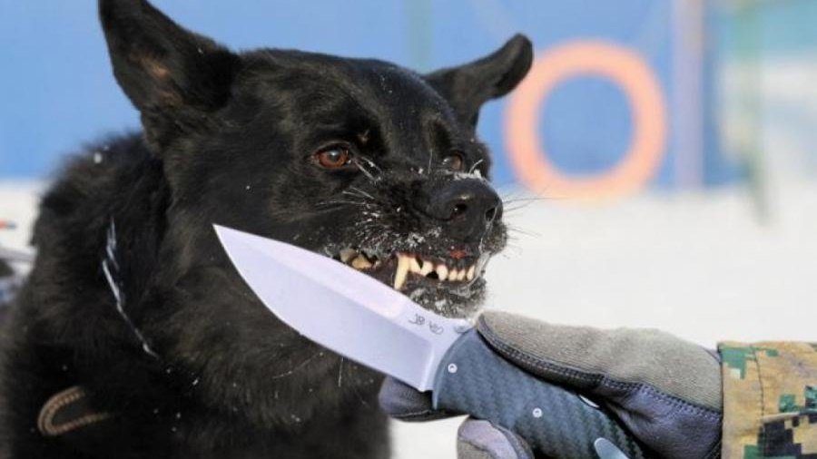 Собака с ножом в зубах