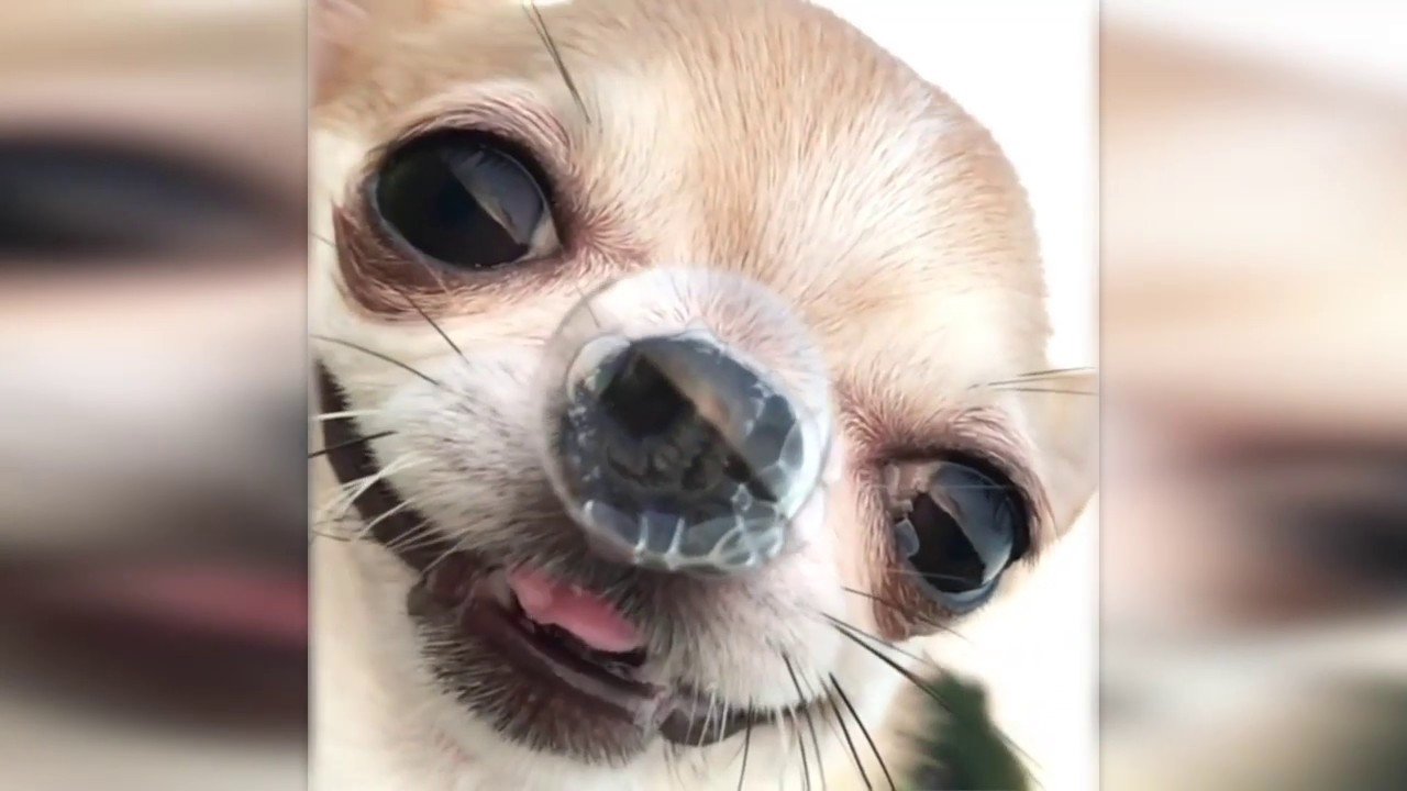 Собачка с пузырем из носа