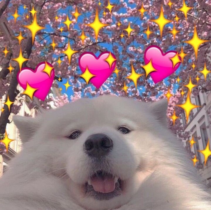 Собака с сердечками над головой
