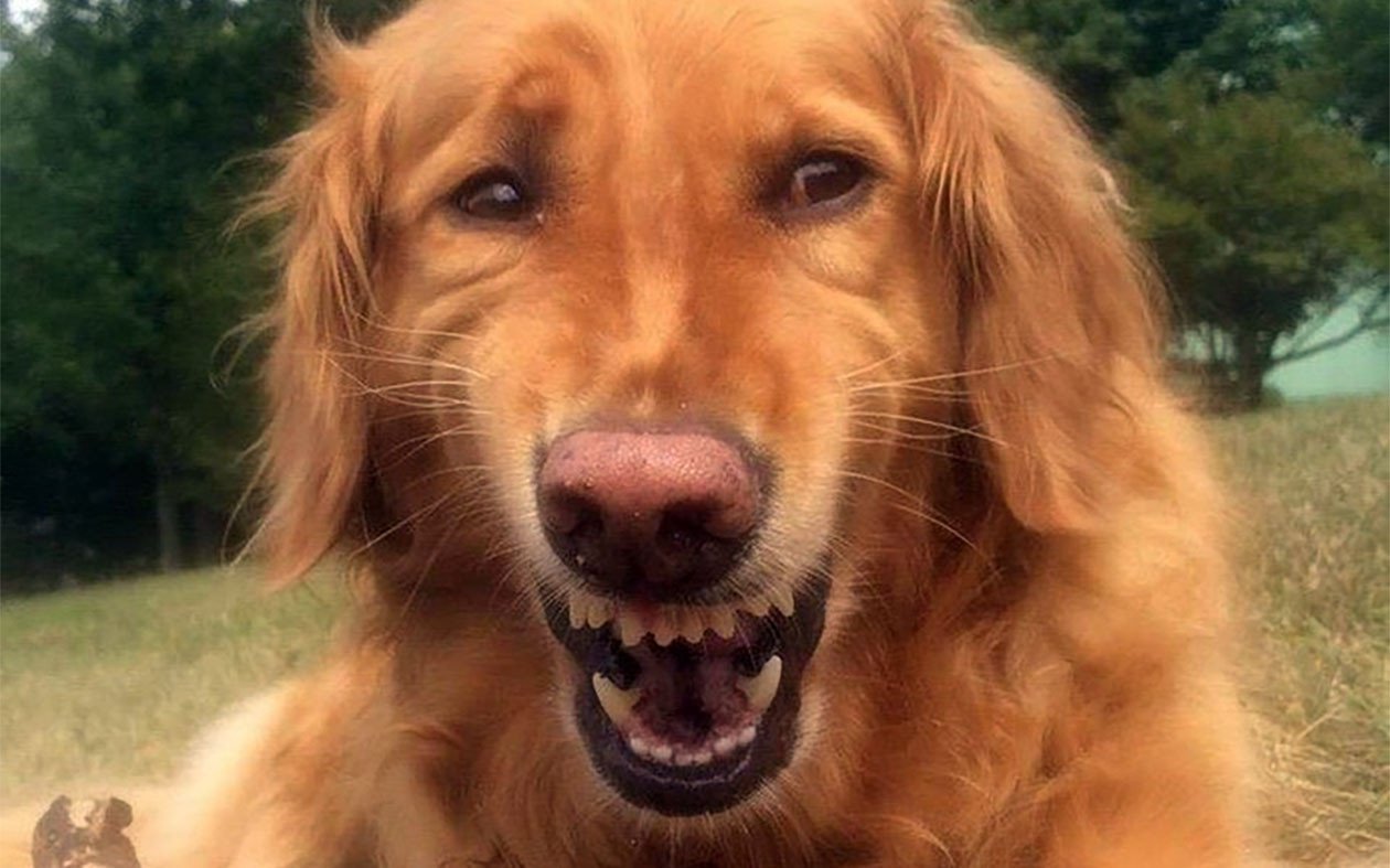 Собака улыбается
