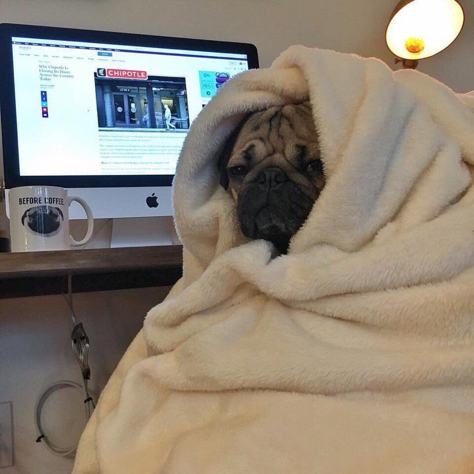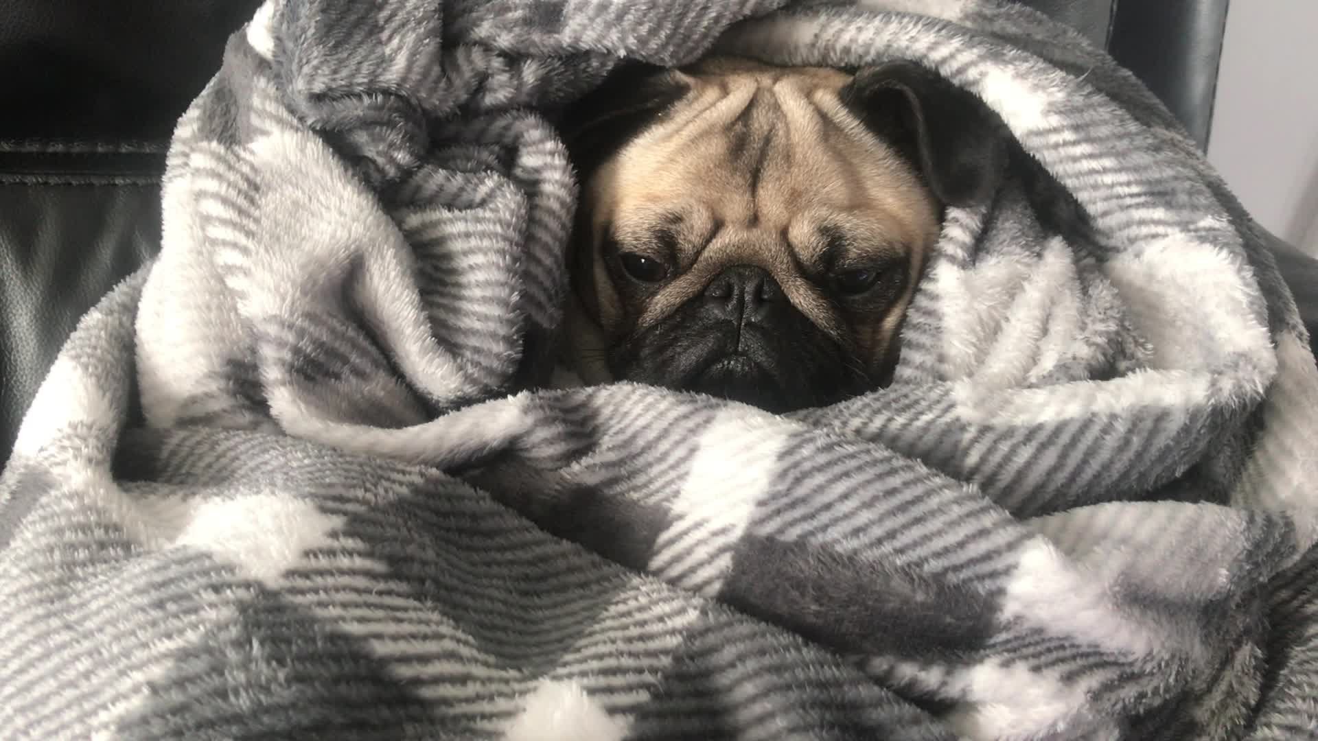 Мопс в одеяле