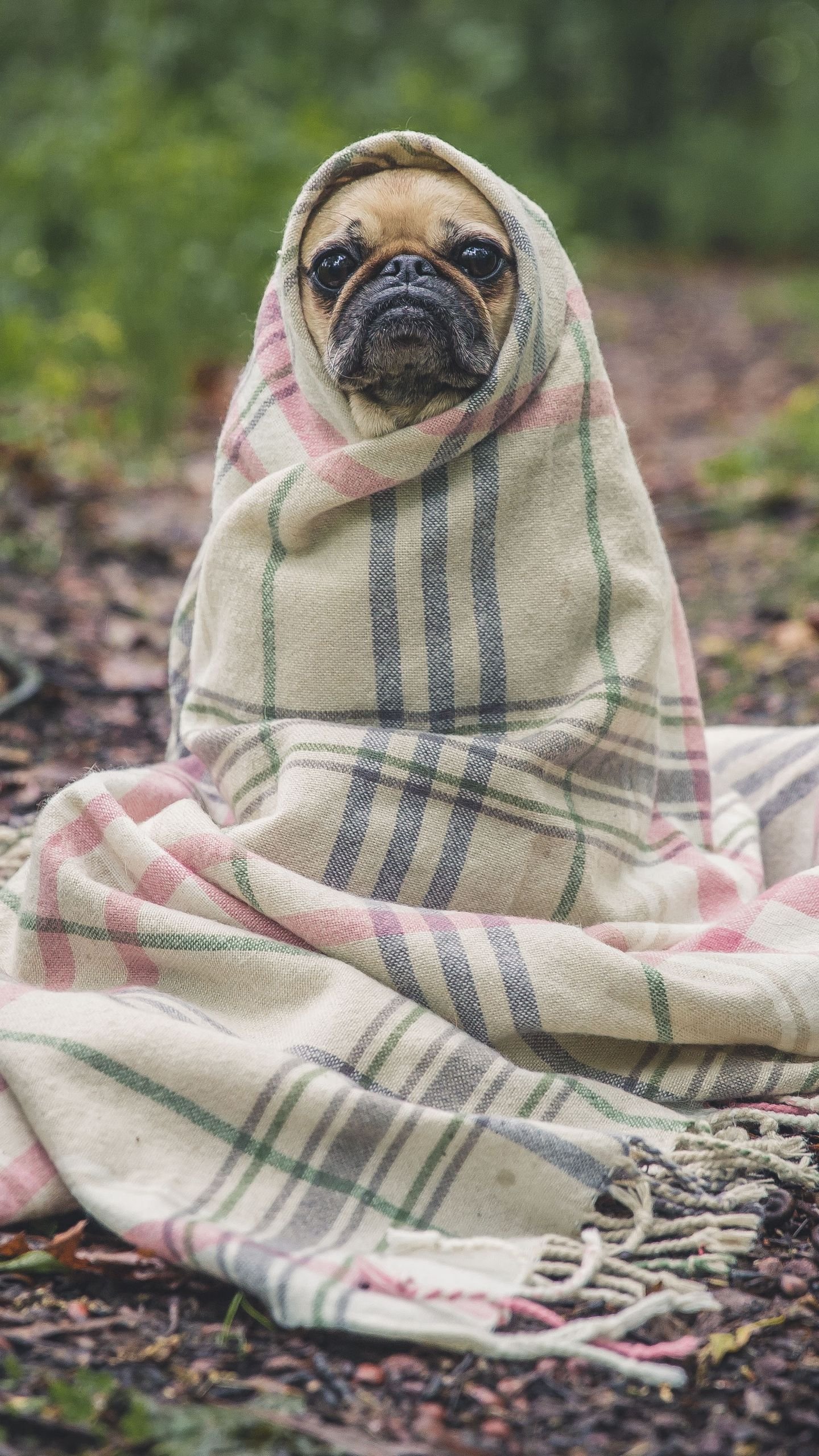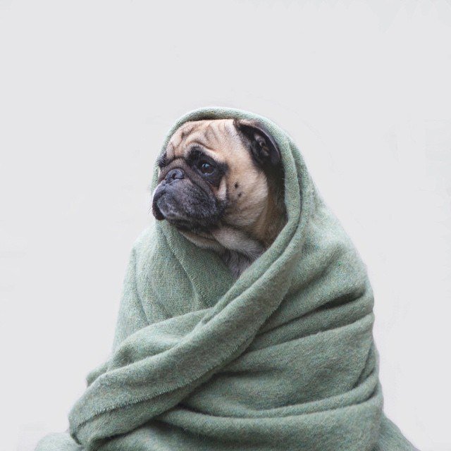Мопс в пледе
