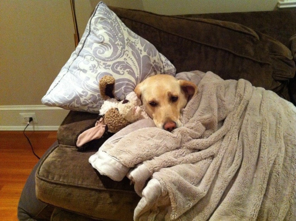 Собака под пледом