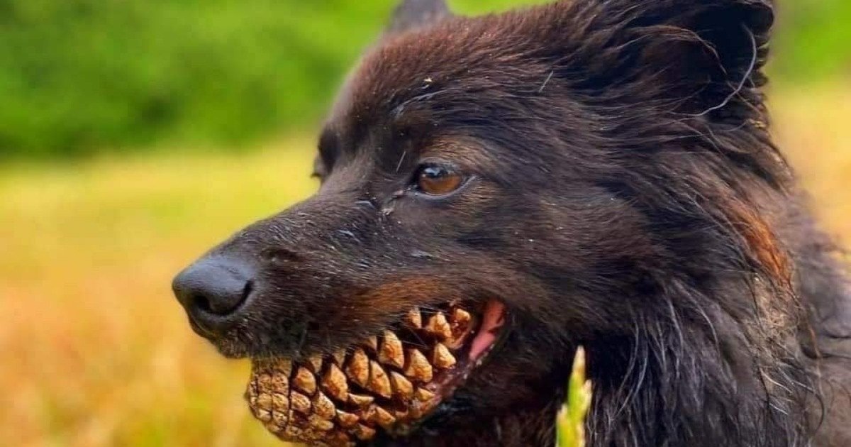 Собака держит в зубах
