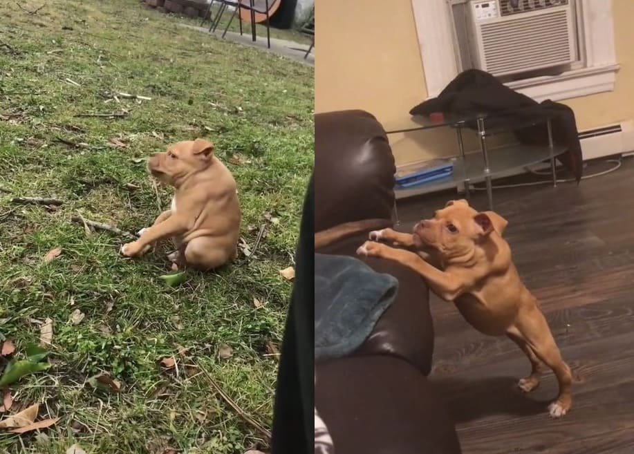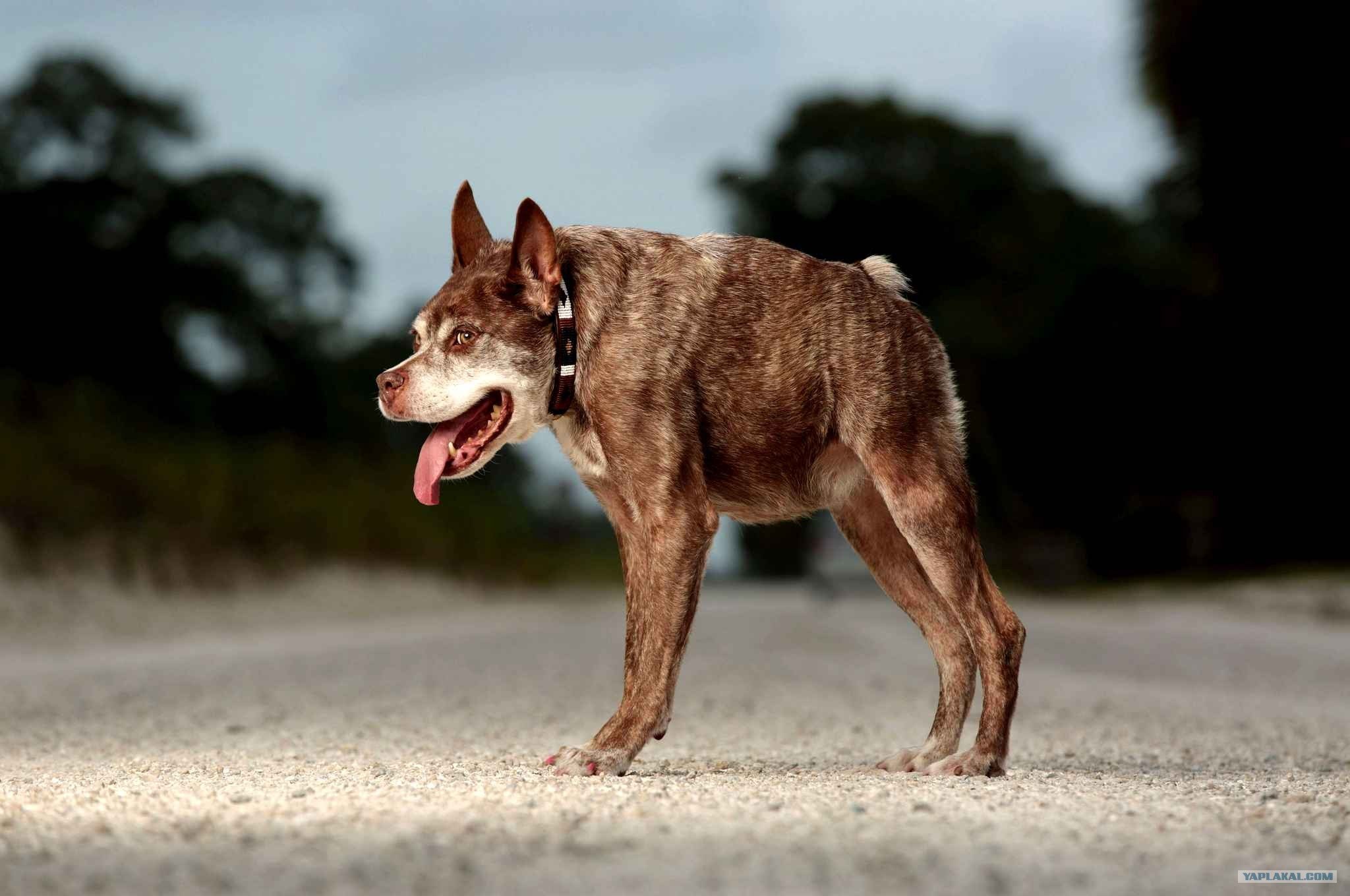 Собака Квазимодо с коротким позвоночником