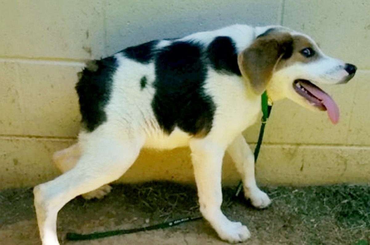 Собака с укороченным позвоночником
