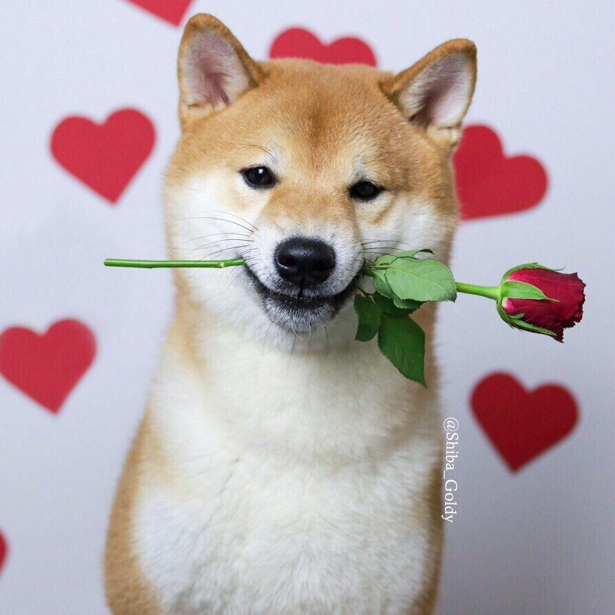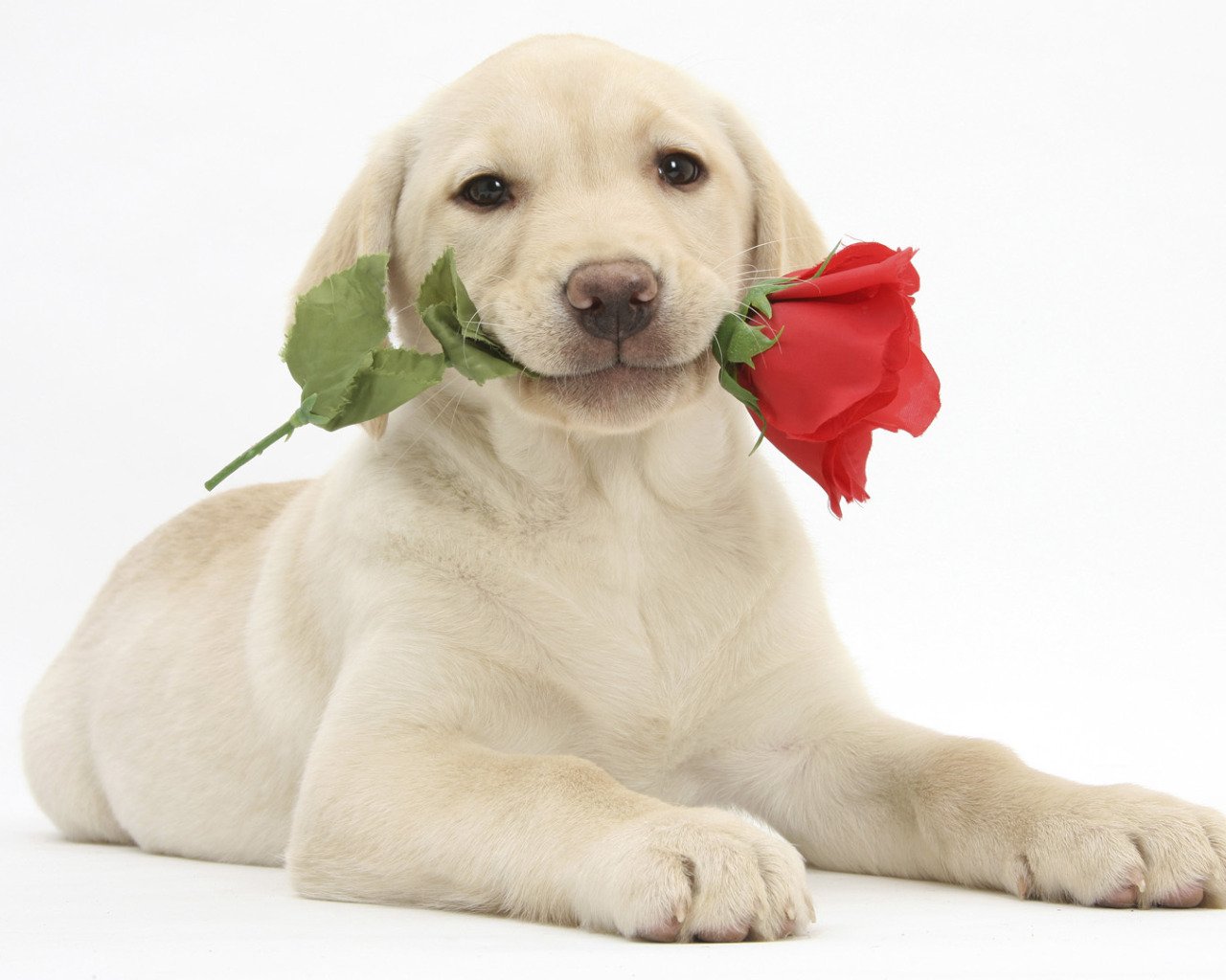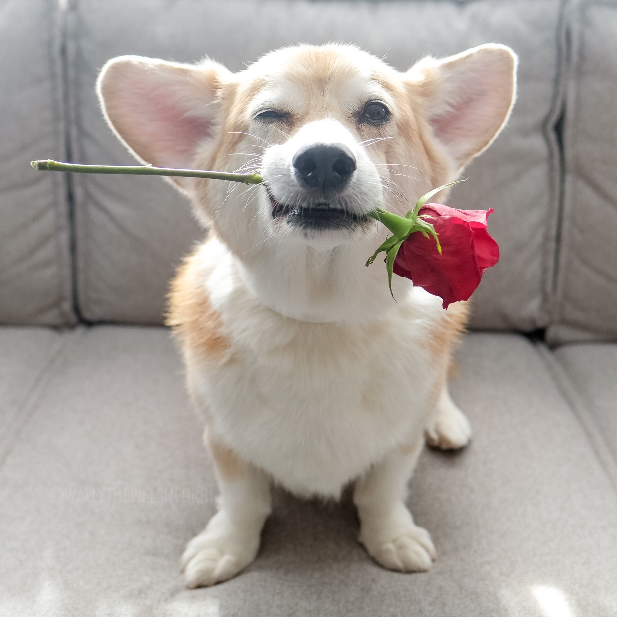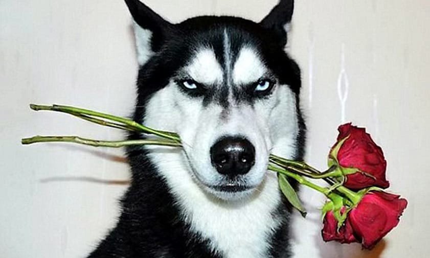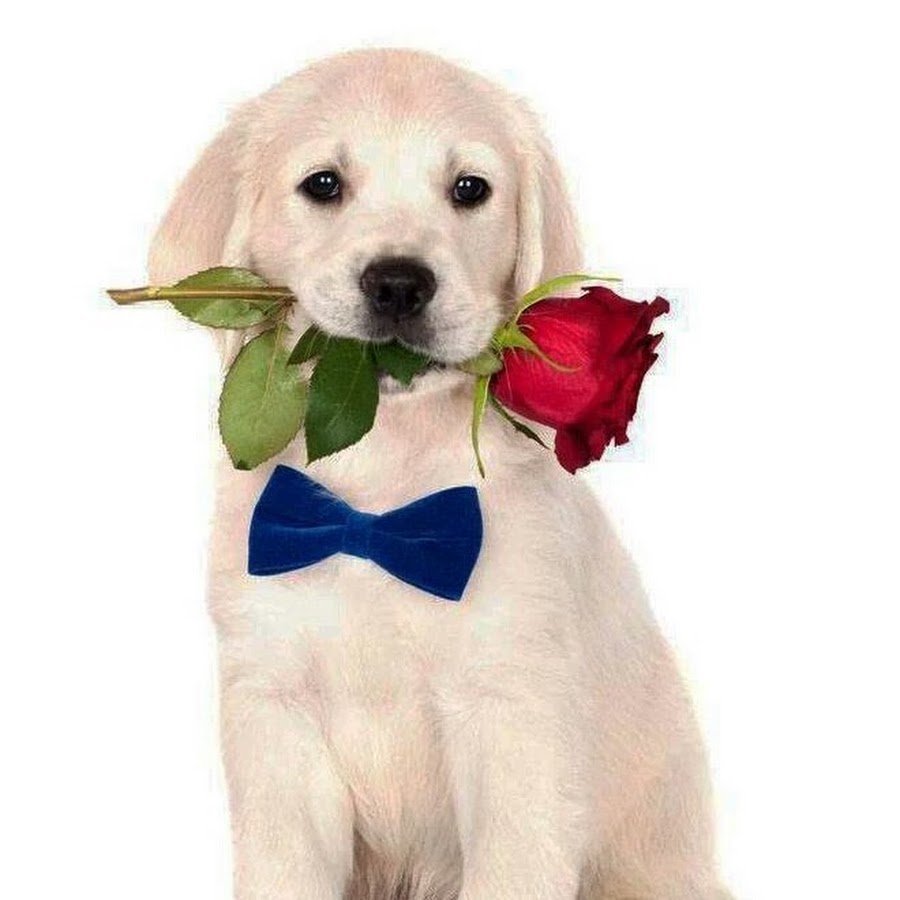Собака с розой в зубах