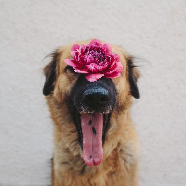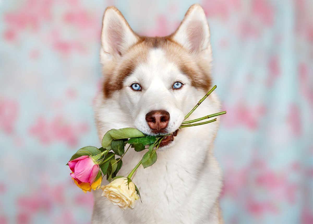 Собака с цветком
