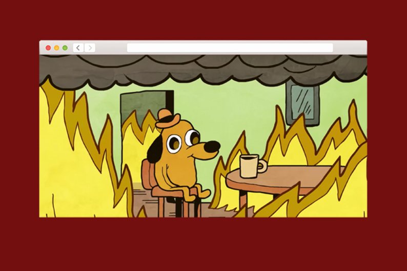 Мем собака в горящем доме