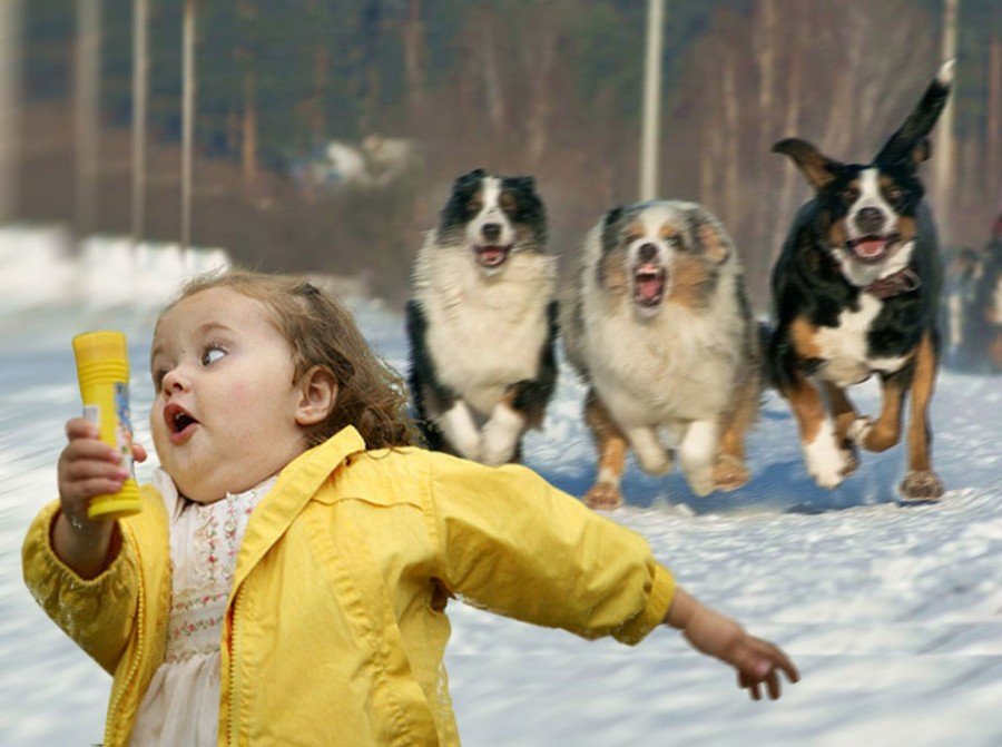 Девочка убегает от собаки