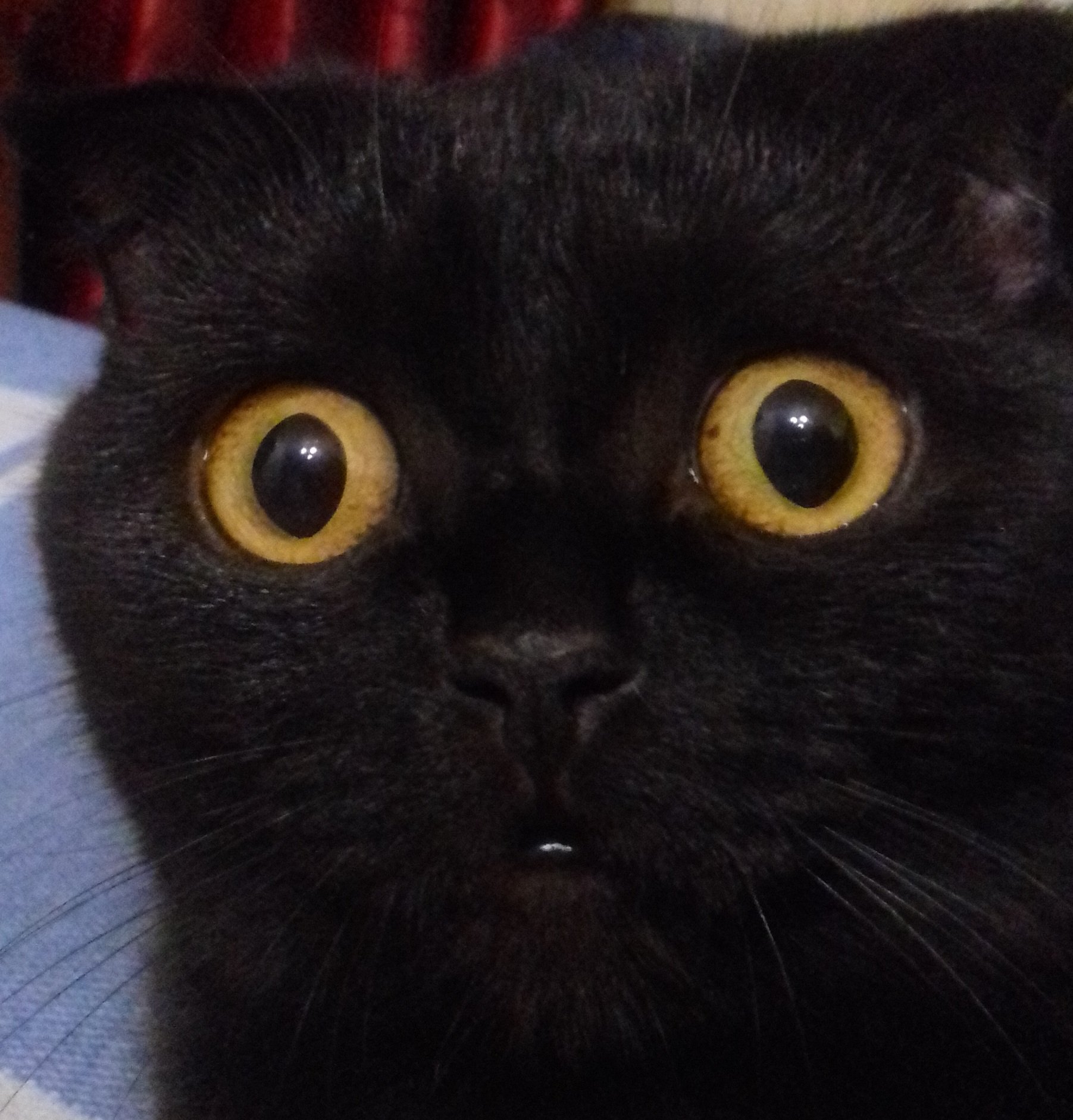 Черный кот с вытаращенными глазами