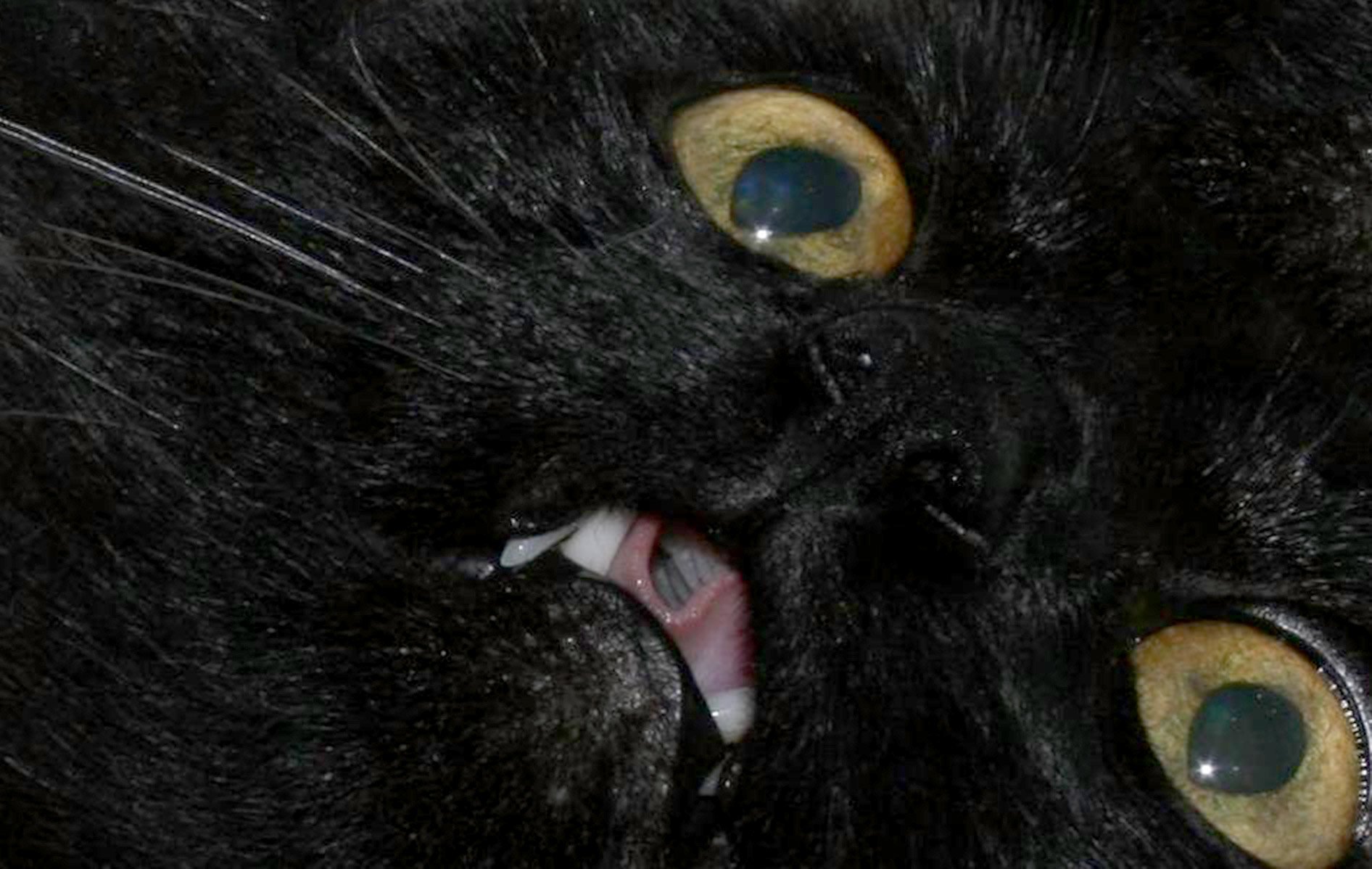 Черный кот с выпученными глазами