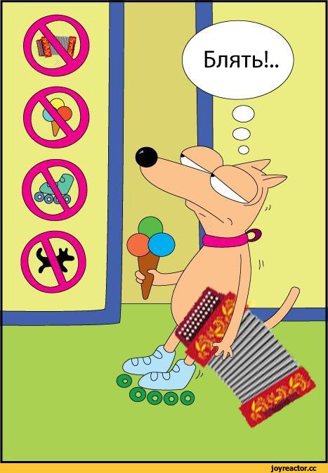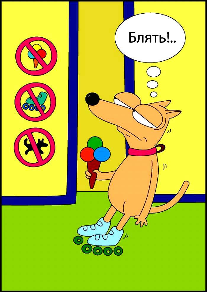 Собака с мороженым на роликах вход запрещен